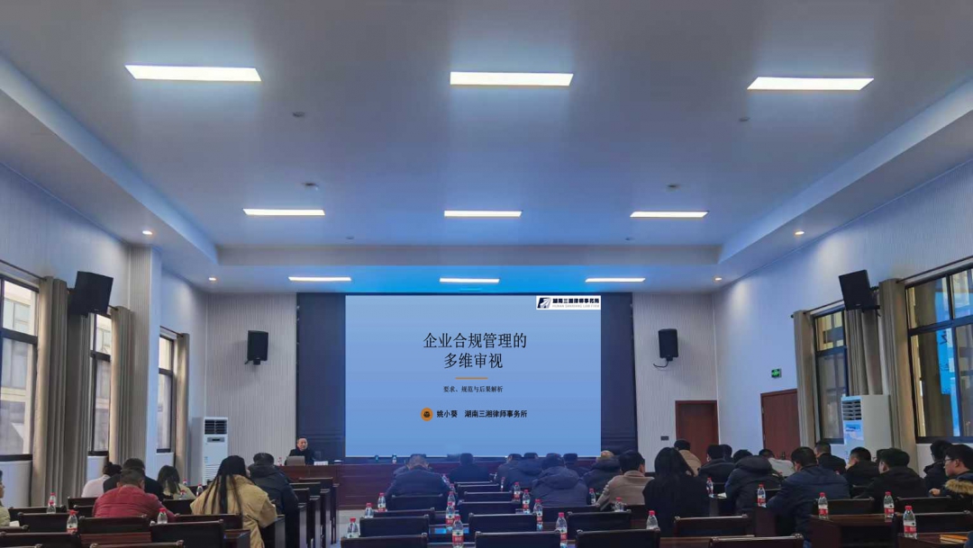 为强化全体员工合规意识,筑牢企业合规经营防线,2025 年 11 月 3 日下午 15:00-17:00,公司在一楼大会议室成功举办普法宣传讲座。本次讲座以《企业合规管理的多维审视》为主题,特邀湖南三湘律师事务所姚小葵律师主讲,公司全体员工参会学习...