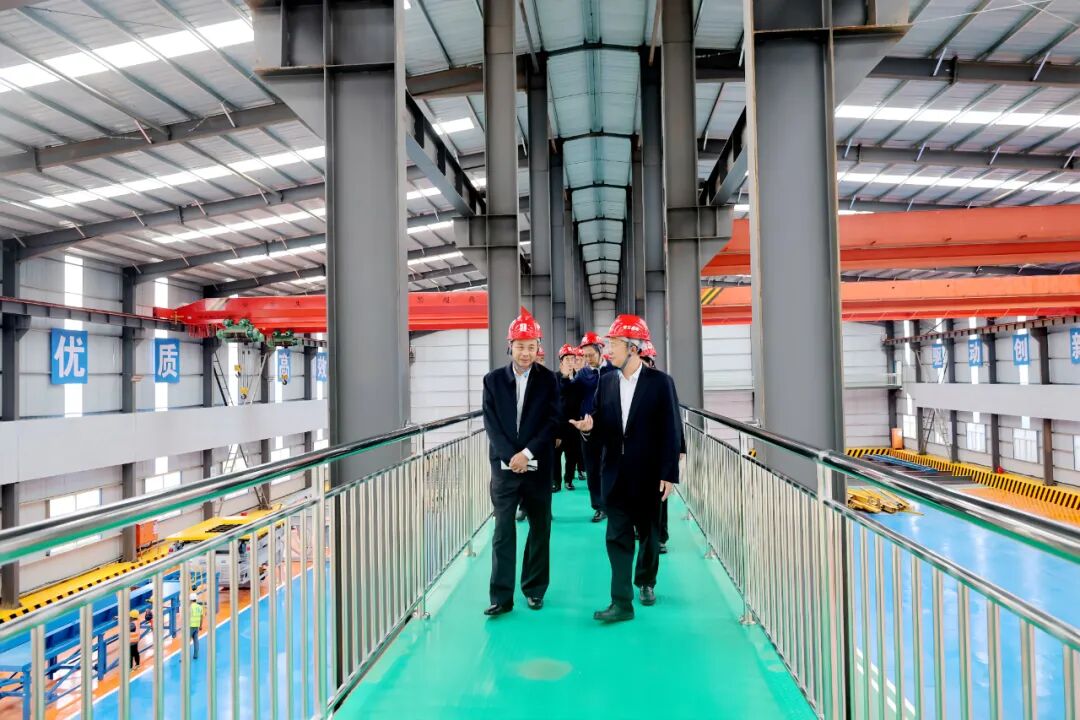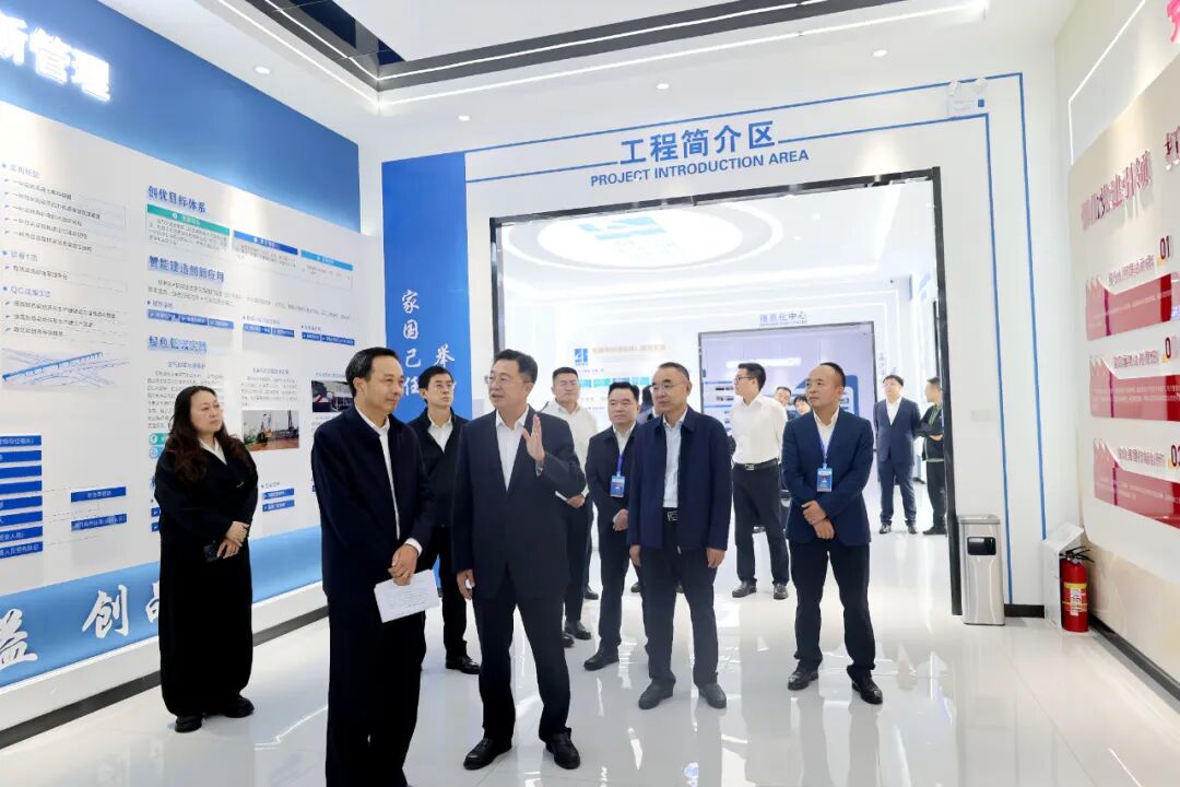 在茶江高速智慧梁场,赵欢一行深入了解了梁场的环形生产线工艺,对项目数字化、信息化、集约化建设方面的成效表示赞赏。