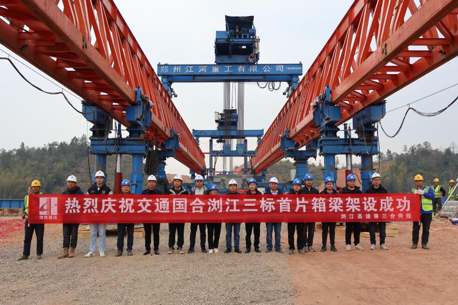 浏江高速首片箱梁完成架设 桥梁上部结构施工驶入快车道